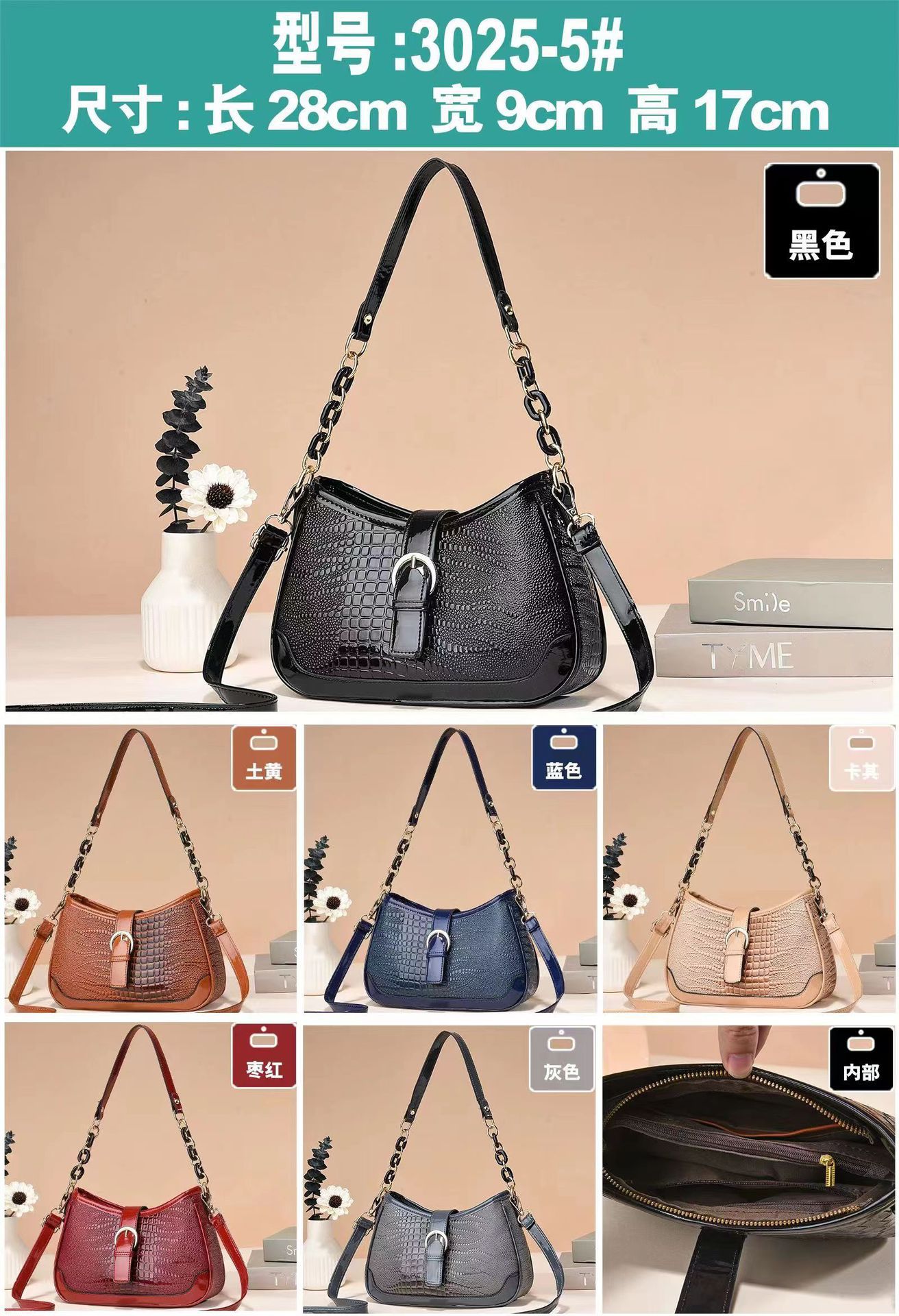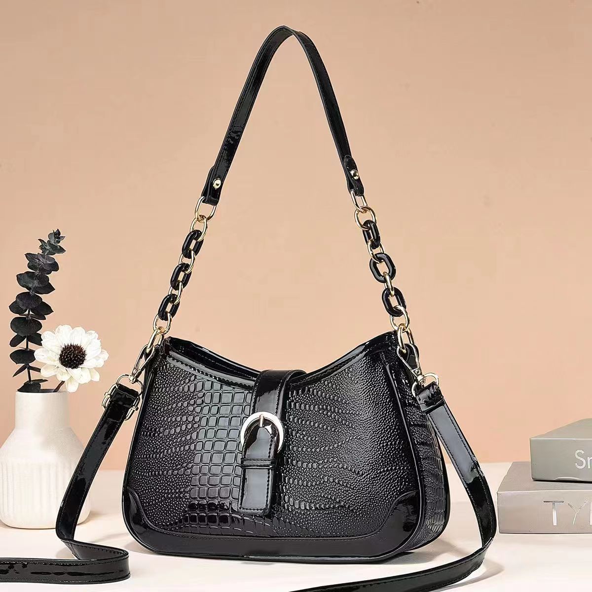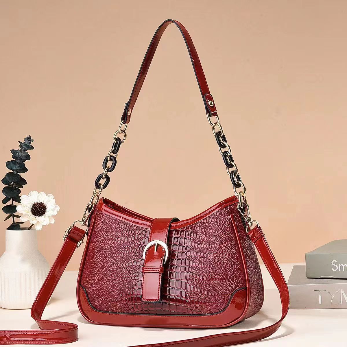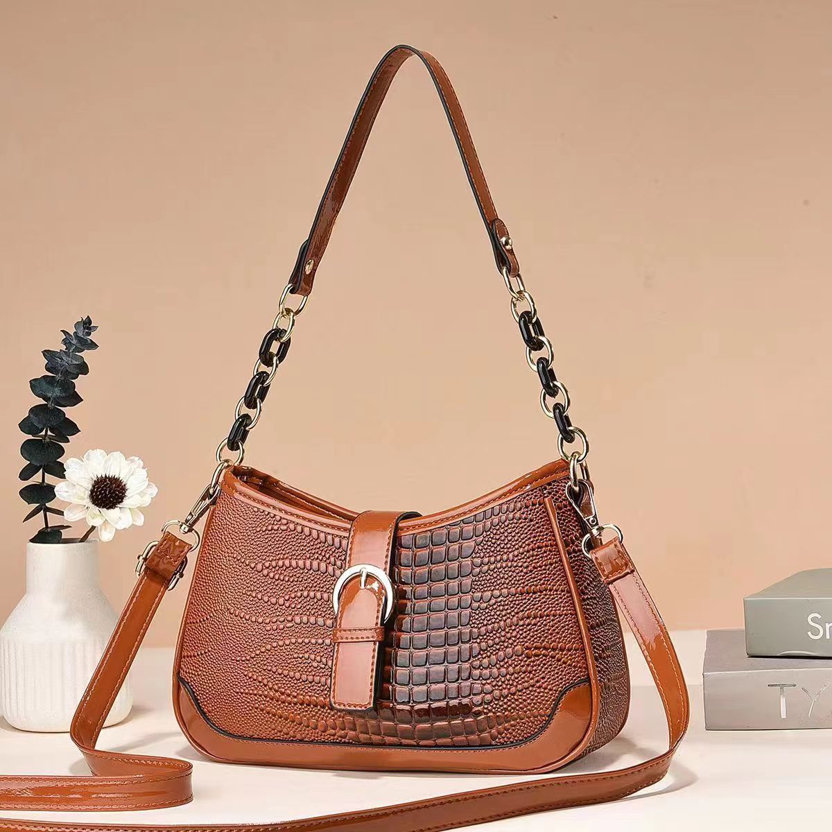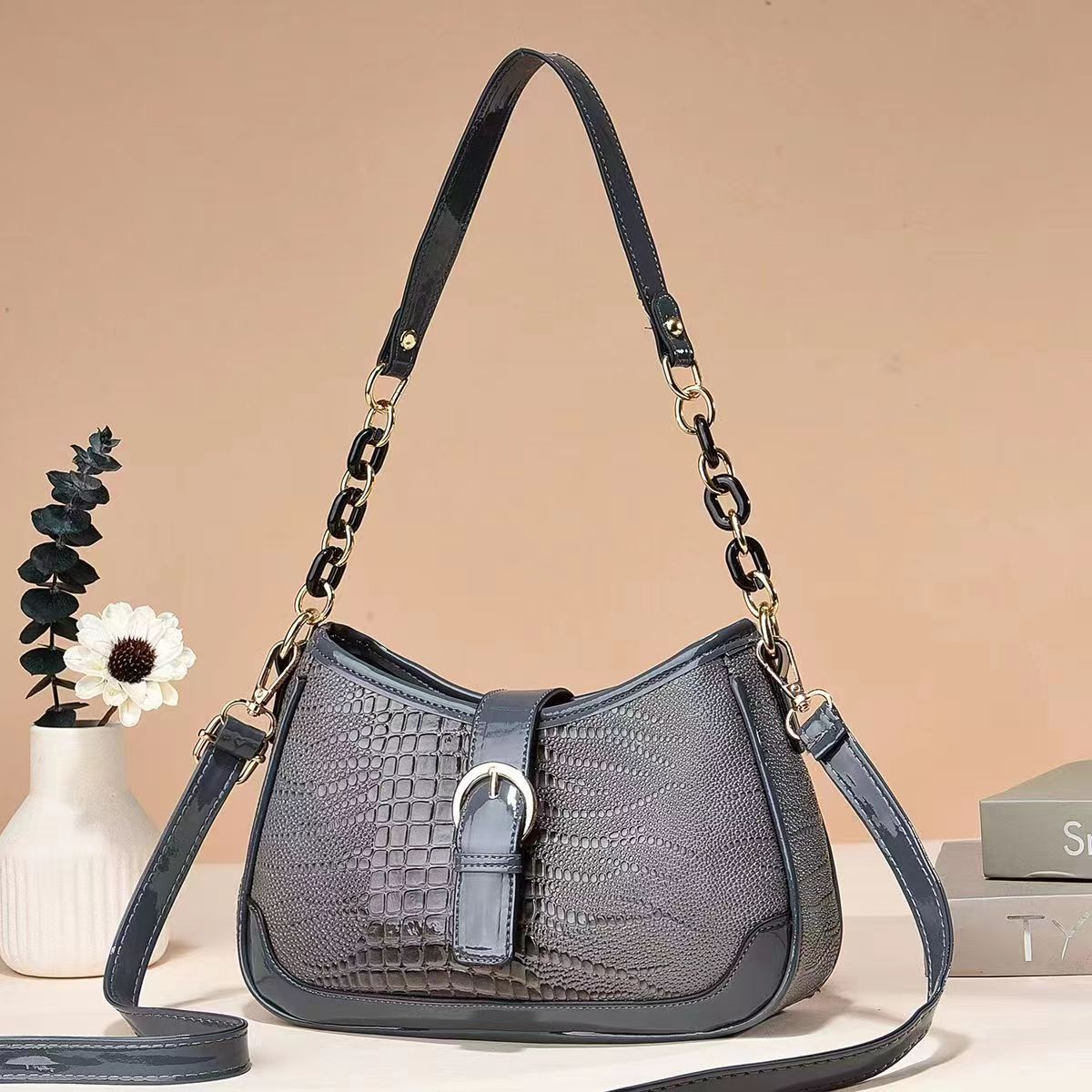 Crocodile patterned foreign style small handbag for women