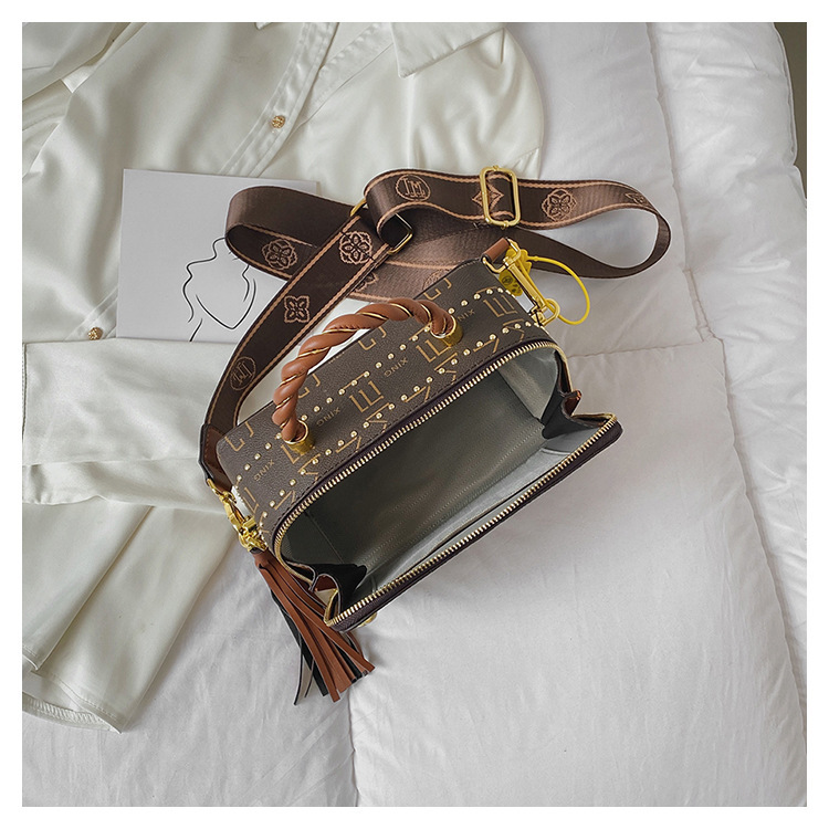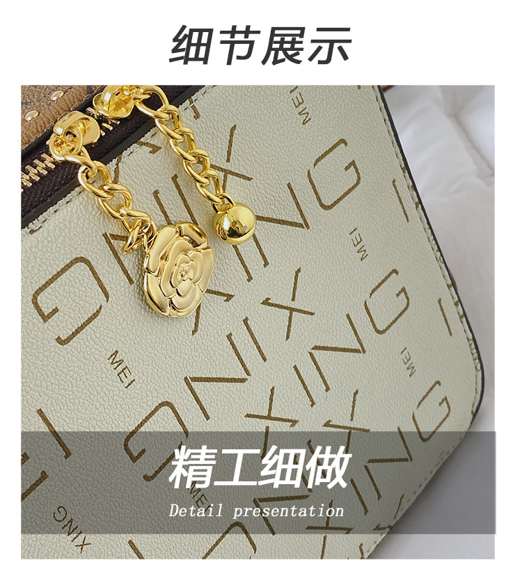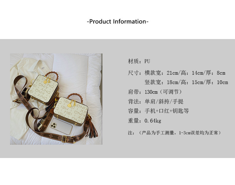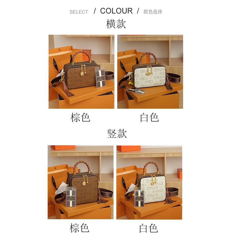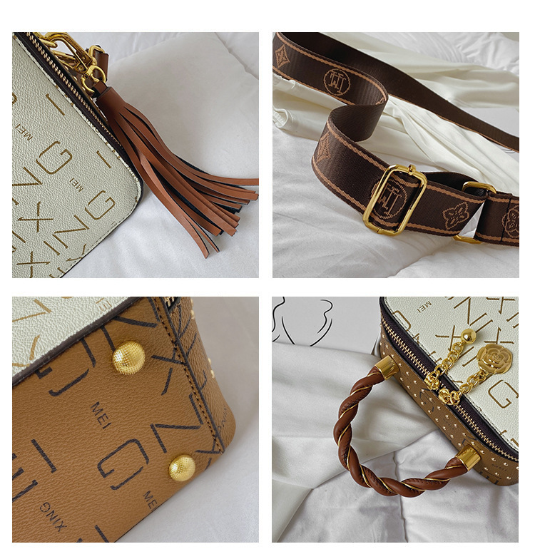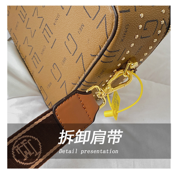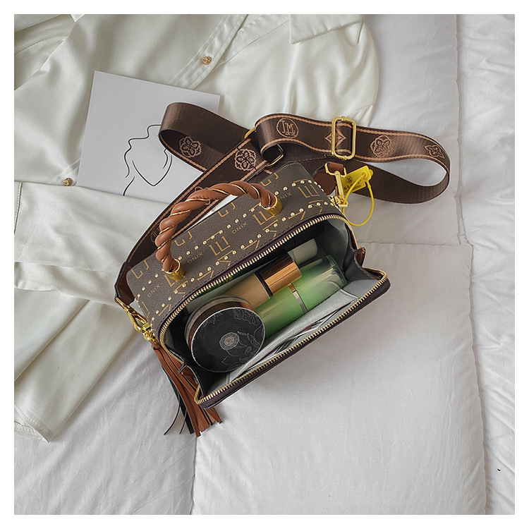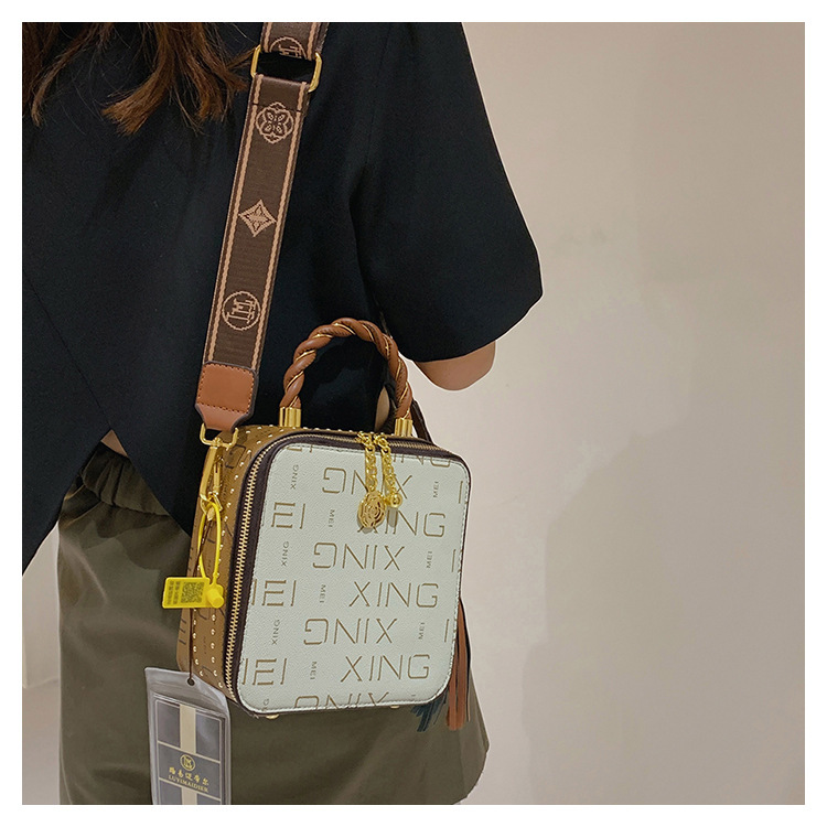 跨境女包2023秋季新款双面印花铆钉老花拉链盒子手提单肩斜挎女包